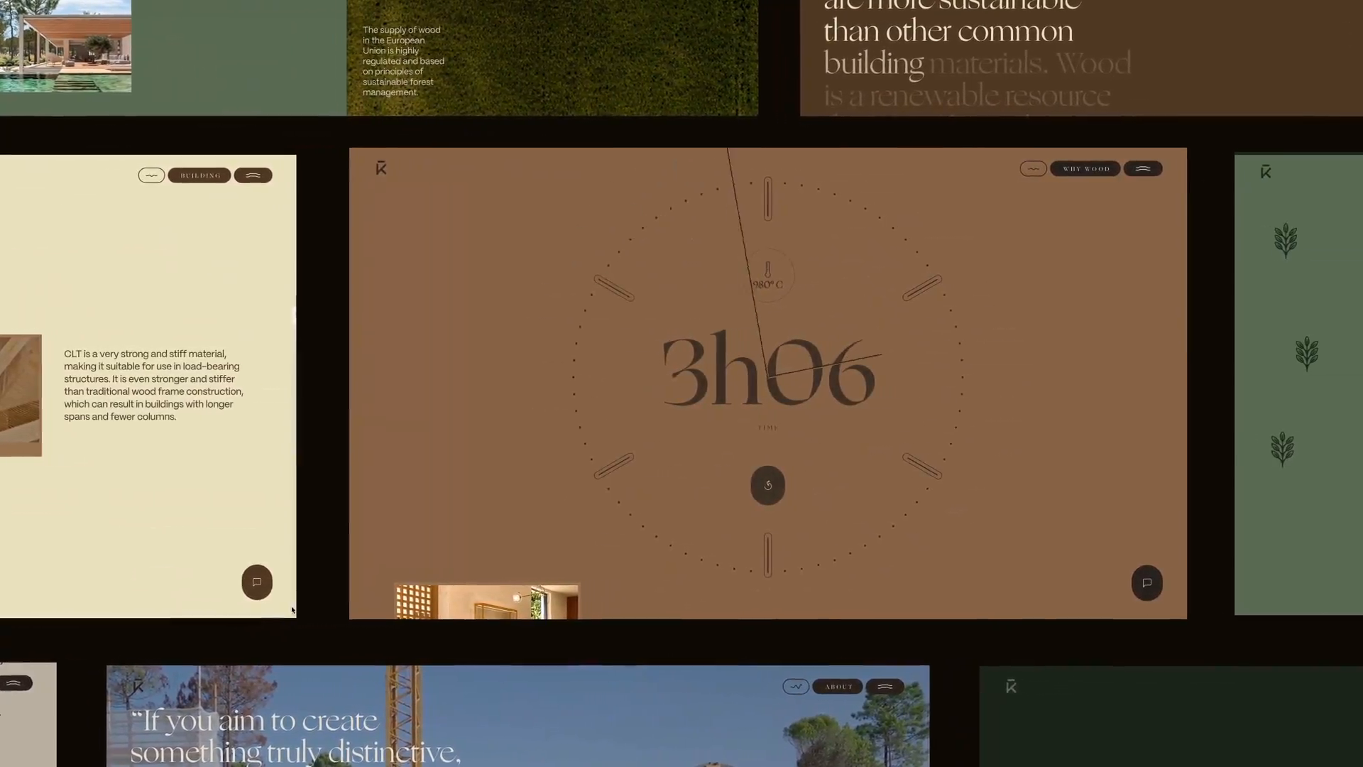 O website concebido inclui áudio personalizado, gravações de campo e música feita à medida, todos harmonizados para amplificar a narrativa de indivíduos que aspiram a ter casas de madeira integradas na natureza. O design visa a elegância e sofisticação, complementado por uma experiência Zen ao fazer scroll, guiada pelos suaves acordes de uma marimba - um instrumento de madeira - juntamente com gravações de natureza e de fábrica. Estes elementos têm como objetivo aliviar o stress diário e motivar os utilizadores a explorar mais profundamente as diferentes secções. Cada cabeçalho apresenta elementos de casas de madeira construídas, com elementos tipográficos entrelaçados com ilustrações da natureza e animações cuidadosamente selecionadas em WebGL, e a informação mais técnica está no Jornal.
