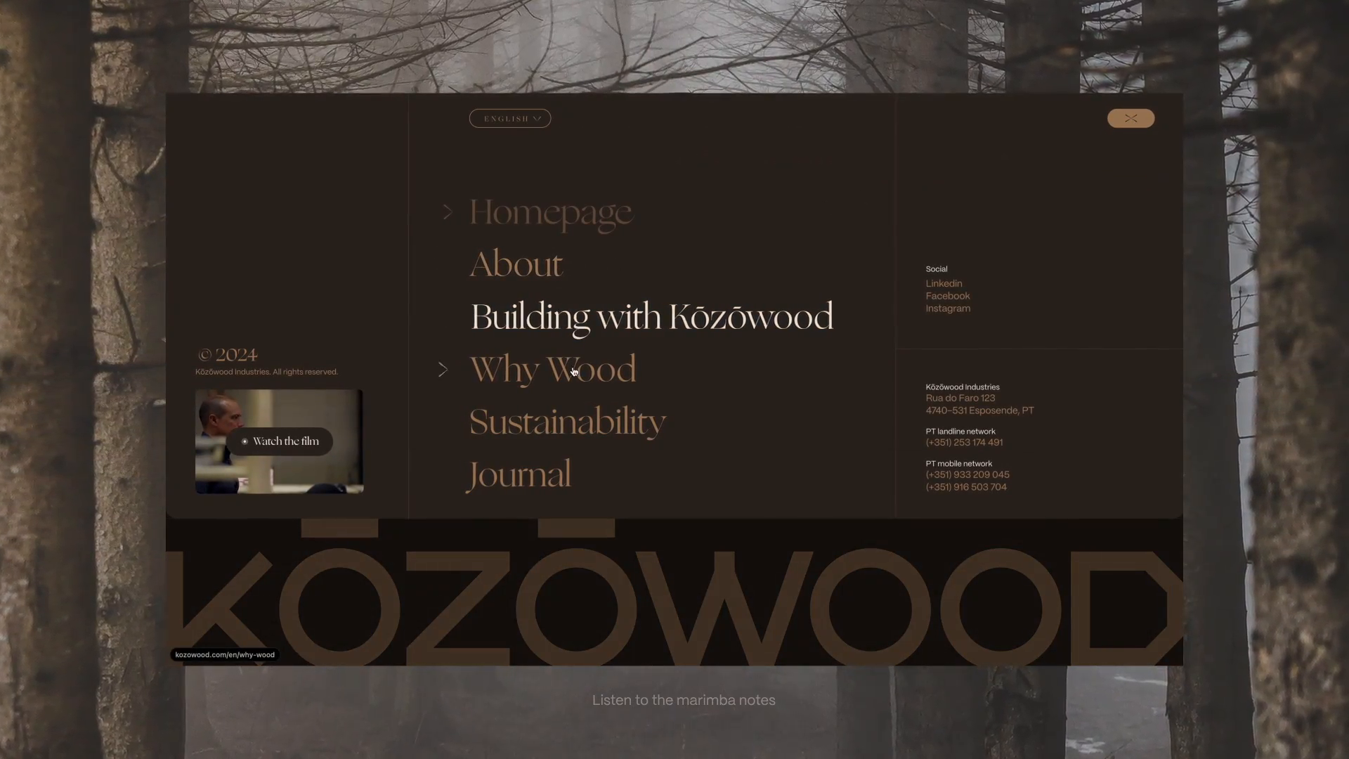 A Kōzōwood especializa-se na construção de casas sustentáveis a partir da natureza e procura um website que proporcione uma experiência digital inspiradora, ao mesmo tempo que desmistifica a adoção da madeira como elemento central no pensamento arquitetónico dos arquitetos. O objetivo é mostrar os serviços e a expertise da Kōzōwood em alcançar padrões de construção em madeira de primeira classe, processos otimizados e um compromisso total com a sustentabilidade.
